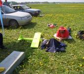 Тока я собрал самоль, тока на взлетку… приехал автокран и куча машин с деревянными домиками… оказывается у пожарных соревнования в выходные и на поле будут делать для них полигон… Ну а я что? Что я зря что-ли самоль собирал, выезжал из дома ни свет ни заря? Вобщем вся эта батарея машин, кран и все кто в них находился с ангельским терпением ждали пока я полетаю… 😇 От большого количества глаз наблюдающих за моими полетами руки тряслись еще больше… но я не ударил в грязь лицом! не посрамил отечество! 10 мин. спокойного полета, мягкая посадка и под восхищенные взгляды неискушенных в нашем деле людей я гордо освободил площадку…