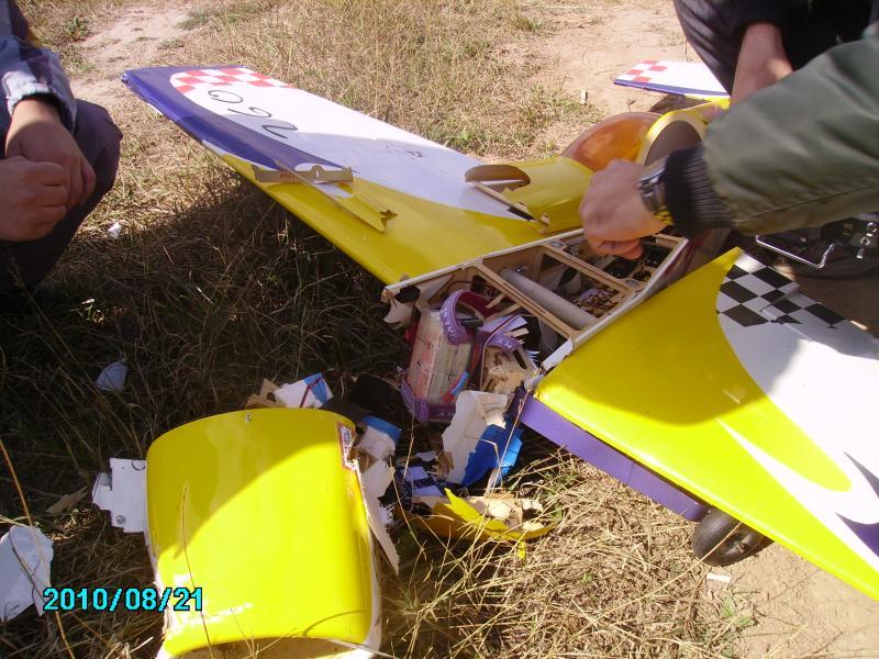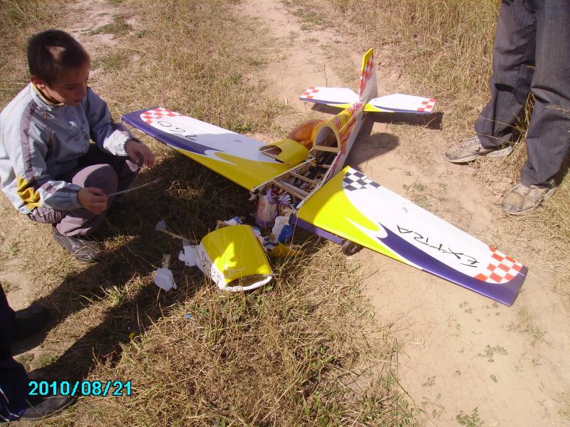 модель снижается, ручку на себя, а газу дать забыл…так в пике и упал. Всё цело, и винт, и мотор, а фюзеляж пополам.