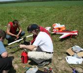 Сегодня летали только Вова и Я… Все остальные попрятались… После первого бака чуть не долбанул вертолет… Прошла помеха фиг знает откуда. Вовремя вырубил двигатель, что спасло вертолет. Но вот обгонная муфта подкачала… ее заклинило, что следовало ожидать как раз после конца облета… Заменил ее на месте на новую…