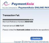 Три дня не могу проплатить посылку. Ситуевина такая: собираю заказ, жму проплатить, перебрасывает на PaymentAsia, вхожу нажимаю проплатить, итог- Transaction Fail, выкидывает назад в магазин, а там тоже fail, пытаюсь повторно проплатить выкидывает на палку.Пробовал удаляя заказы 3 раза, результат один. Карта Visa, в январе без проблем тем-же путем проплатил и получил посыль.