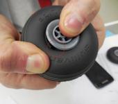 Когда вскрыл упаковку обратил внимание на то, что ступица чуть кривовата… Отогнул покрышку и увидел порваную резину. Да и не резина она вовсе. Какая то жесткая хрень…
