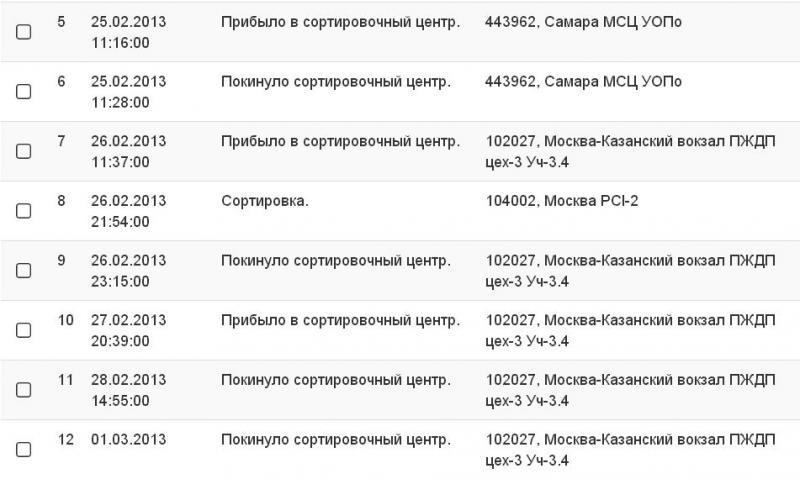 Вторая посылка с RA285414448CN Приём 21.02.2013 10:38 Китай