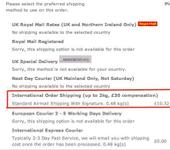 Если выбрать способ доставки со стоимостью 0.00 фунтов, то после оплаты заказа придет письмо с возможными способами доставки и ссылками для их оплаты. Я так и делал - оплатил заказ, пришло письмо с 2-мя способами: International courier service за 27 фунтов (EMS я так понимаю) и второй International signed for airmail за 10ку фунтов. Выбрал 2-ой способ, оплатил, практически тут же прислали трек, в тот же день уже трекался. В общем как и писали выше, в плане обработки заказа и его отгрузки работают быстро.