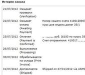 - 25/01/2013 Доставляется (Shipped) Shipped on 01/25/2013 via USPS [USPS Intl Express], Tracking number EC200161476US