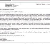 We regret that we were unable to process your order (Order Number xxxxxxxx) as we could not obtain authorization for the charge.