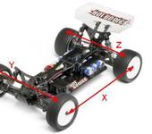 Не могу решить какую делать колею и колесную базу. Размеры колес: зад ~85х45 перед ~70х40 (формат диаметр Х ширина) на прикрепленном изображении показаны размеры которые меня интересуют (X - расстояние между передней и задней осью, Y,Z передняя и задняя колеи). Что посоветуете?