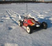 Был на даче в первых числах месяца - отжигал тоже на багги 1:8. По полю не поехала (снег рыхлый, -15 на улице), но по озеру ездила отлично! Глубина снега была где-то ~8 см (ветер поработал на славу). Завелась быстро (двиг всегда зоводился хорошо, нареканий не было, достаточно чтобы топливо поступило в цилиндр, причем я не спец по регулировки 😃, т.е. отрегулировал всё на глазок) топливо 20% нитры, свеча ОS №8.