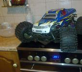 Нет, батарея одна. Расположена поперек шасси на месте ранее стоявших сервомашинок газа и переключения скорости. Еще поставил переходник только на 2-ю скорость