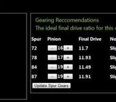 вот здесь обсуждалось как высчитывать передаточное отношение, там же линки на таблицы и калькуляторы, там же я выкладывал передаточные отношения для моторов LRP