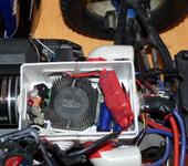 Вот, например, я решил избежать попадания на контроллер воды, грязи и т.д., используя 2 распаячные коробки, которые сперва разрезал, потому что они были малы для контроллера, а коробки большого размера не подходят из-за того, что корпус у е-ревы в задней части для них слишком низко расположен, а эти две были в самый раз.Короче, я использовал: 2 распаячные коробки,1 кулер,1 тюбик супер клея, который плоховато клеит такую пластмассу 😁,1 крышку от 5 литр. баклажки,марлю, и залил это дело соплями.Все хорошо работает, конструкция прошла испытания в полевых условиях - воду и грязь не пропускает.Только вот одна проблема 😦 :при падении на крышу, в частности на заднюю часть, происходит выламывание кулера и его поломка.Хочу сделать дуги безопасности.