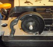 Разобрал эту часть с шестерней, на фотках ниже - в разобранном состоянии. Всё-равно не очень понятно как это должно было работать и почему нельзя было просто заблокировать шестерню. И не совсем понимаю как это сделать самому.