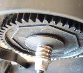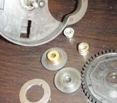 вот та шайба которая стоит за пружиной должна вращяться вместе с валом, вал должен быть за резьбой-шестигранным и шайба, точнее две за шестерней такаеже, плотно на валу с шестигранником сидит и зажимают эту шестерню с обоих сторон пружинкой, просто на шестерёнке нехватает накладки металической, когда отвернёш то поймёш…