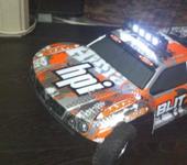 Киррил, здесь все просто. Берешь серву не нужную, разбираешь ее. Выпаиваешь моторчик. Подстроечный резистор ставишь в центральное положение, а в идеале замеряешь сопротивление на подстроечном резисторе и ставишь обычный резистор с таким номиналом, но это не обязательно так что бы компактней было. Вместо выпаянного мотора припаиваешь провода от света вот в принципе и все. Быстро, дешево, сердито)))) Я брал стоковую серву HPI