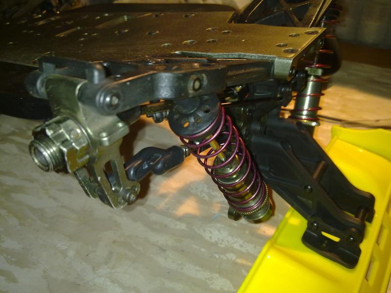 В частности,крепления рычагов с помощью винтов,способ крепления всего заднего моста к пластине шасси,металлические распорки шасси,металлические кулаки.Привода не ЦВД-не проблема,можно гонять и на таких.Нет пыльников на аммо-можно сколхозить от топовых телег.