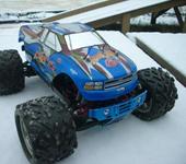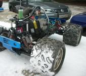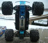Что успел-это два раза гонял по трассе и раз на парковке(асфальт без снега) в режиме башинга.На трассе не хватает сцепления с грунтом и центрального деффа но прыжки с 1.5м трамплина выдержала,пока…