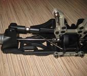 Поворотные кулаки алюминивые, но алюминий литой, в принципе посмотрим как они походят. В ТИМ-ките, передние кулаки уже пластмассовые. Подшипники садятся плотненько в кулак, единственно, как мне показалось есть люфтец в самой оси приводной по внутренней части подшипника, но как я понял люфты должны быть. Еще очень понравилось и это думаю многие сейчас делают, это передние С-хаб сделан с защитой от летящей грязи впереди идущей машины, то есть защищается кристовина приводов от грязи при повороте. Сейвосервер сделан безупречно, подшипники стоят только на стойках, на акермане только втулки, но люфтами и не пахнет, все плотненько. Еще очень понравилось везде, очень плотно садятся шары в наконечники тяг. Верхняя планка сервосейвера карбоновая, легкая и очень прочная, первый раз подержал в руках карбон 😊. Ну и задок тоже в принципе все стандартно. Приводные колесные каарданы сами крестовины обычные карданы, стальные.
