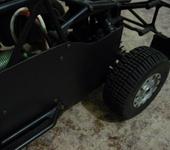 Вот такую защиту вырезал из старой папки для документов. Пластик оказался в меру жесткий и не ломкий. Все прикручено на болты к каркасу.