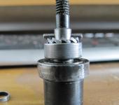 мне пришлось избавиться от конической шайбы так как иначе я не мог поставить пин для хекса и что бы мне хексом не пережать подшипник к кулаку была поставлена тоненькая, самоконтрящаяся, сточенная шайба, так же были сточены проставки между подшами что бы их не выдавливало.