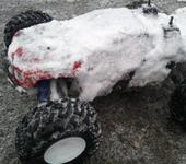 Серва пока не парит, по снегу сам видел как рулит. Пока снимал на камеру особо не порулишь, я даже и не знаю какая стоит и на сколько Кг.