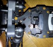 После нескольких часов всё-таки смог поставить рулевую))) В общей сложности пришлось в нескольких местах (и достаточно сильно) пилить две детали, которые держат рулевую сверху и снизу, т.к. высота рулевой наааааамного больше стоковой, рейку пришлось крепить сверху, а не снизу, сверлить дополнительные дырки под крепления, плюс подбирать винты, а также попробовать несколько вариантов крепления тяг к колесам и к серве. Получилось вроде нормально, нужно обкатать. Пригодилась пластиковая шайба от стоковой рулевой. Никаких дополнительных деталей больше не использовал. Фотки позже выложу)