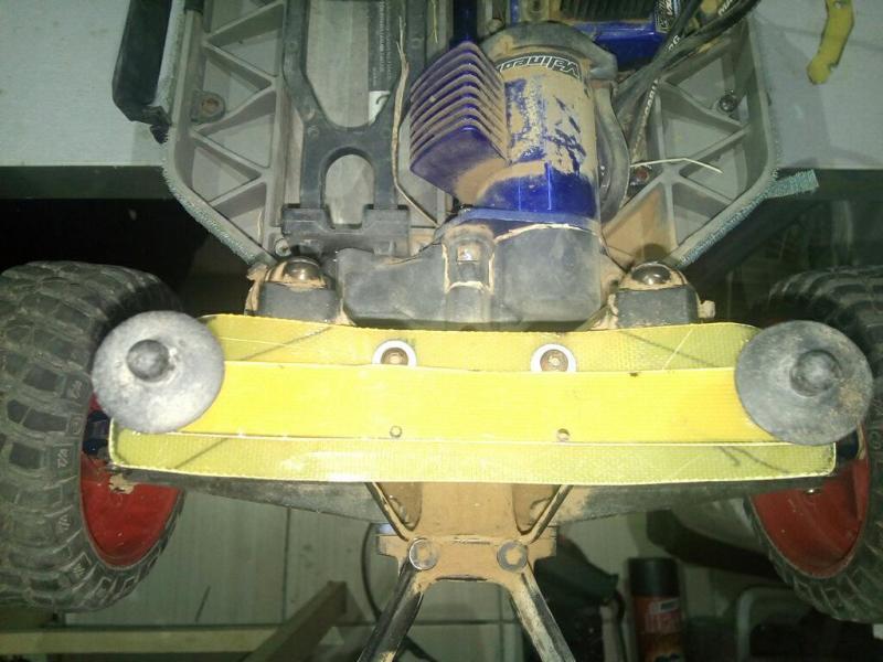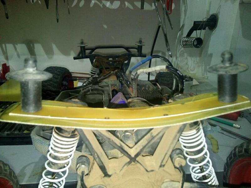 Обломилась задняя поперечина крепления кузова, хорошо что стоечки не потерял,вернее потерял и потом нашел. Смастерил щас самодельную поперечину. Материал - тоненький стеклотекстолит,вот фотки:
