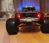 Включается у меня ползунковым включателем, который выведен в отверстие для мегагерцовой антенны. Следующий кузов я уже буду делать не закрашивая фары, чтобы модули убрать внутрь.