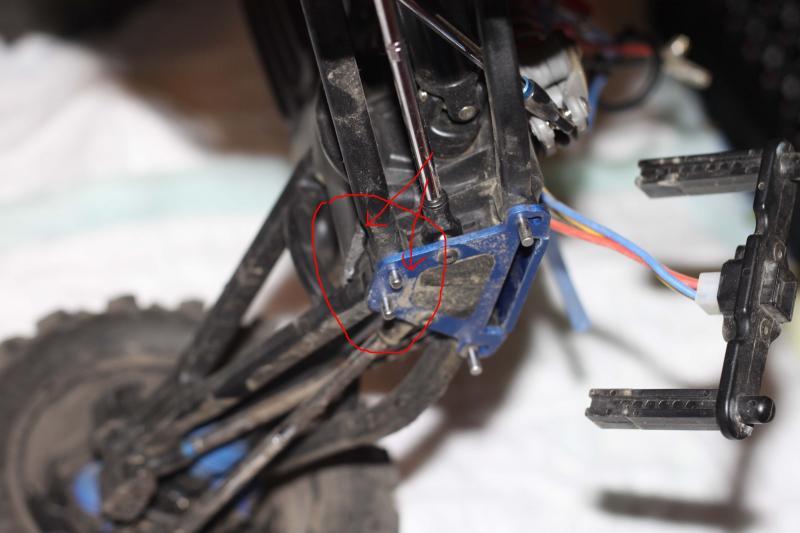Штырьки которые обведены закрываюстся той частью которая у тебя отломилась (нижнея задняя защита), а верхние штырьки закрываются рогатиной крепления кузова, к этой рогатине крепится еще разьем стартера и глушитель выхлопной трубы, ты вукрутил из неё опоры крепления кузова.