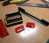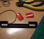 ну и заюзал диоды 5050 - и все это дело вместе с передним светом заводится в кожух для приемника, где чудесно помещается электронный свитч с ХК - 3-м каналом с пульта будем включать выключать фары. Питание от регуля 6 вольт - поэтому задние три диода стоят последовательно и не требуют гасящих резисторов.