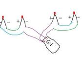нет, не так. Они у тебя перегорают потому, что соединены параллельно, т.е. потребляют на себя 6v, а рассчитаны на 3v. А их нужно соединить последовательно, т.е. к минусовой ножке одного подсоединить плюсовую ножку соседнего, тогда они будут уже потреблять 6v. Вроде правильно объяснил.