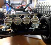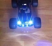 Одним из требований к машине было наличие у нее фар, так что пришлось сразу после вскрытия упаковки их устанавливать. День рождения у сынули в пятницу, тогда же и первые покатушки. Одно разочарование - еще не пришло зарядное для липы, купленное на eBay, так что катать придеться на одном родном NiMh-е. Как откатаем, отпишусь о впечатлениях и выложу фотки получше. Пока же пара фоток с телефона.
