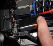 - Перенес аккум (крона)+ кнопку+ штекер. Предыдущий вариант установки аккума оказался не удачным. Постоянно мешал когда меняешь акк от модельки. + после вылета клипсы на повороте акк вылетел вместе с кишками от света. Теперь расположен рядом с сервой.