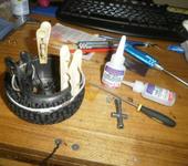 Далее немного доработок “на коленке”, как советуют из-за бугра (вычитано на питерском сайте в теме об этой модели): срезаем ребро по центру диска, для установки более жесткой вставки внутрь покрышки (в комплекте прилагались 2 варианта вставок - жесткие оранжевые и мягкие серые, для трассы выбираем первые).