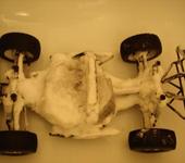 -пластина над рулевой трапецией (ушла в расход при хорошем ударе в ротированное сервой колесо, с последующей деформацией и выломом верхнего переднего рычага из нее), решается покупкой алюминиевой опции.