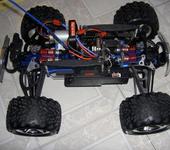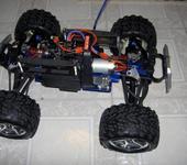Удалось по-работать над давней модификацией REVO в электро. После снятия ДВС-а, глушака и бака с РЕВО, оказалось не так уж много места для переделки. Первым делом пошел на поиски 32P спура, так как на РЕВО стоит метрический, а хотелось бы использовать стандартные е-максовские пиньоны. Выход был найден с модификацией спура от NTC3 50-ти зубовый спур, он подходит практически один в один на место ревовского. (требуется незначительная расверловка 3-х отверстий, если делать качественно, то центровка сохраняется). Далее пришлось по-мудрить с креплением мотора (фотки будут в выходные, камера в отпуске), но удалось сохранить оригинальную схему и расширить выбор пиньонов и моторов. Удалось сохранить и дугу защиты. В результате пиньоны лринимаются от 11 до 24 зубовые, а вот со спурами вариантов практически нет разве, что плюс-минус 2 зуба.