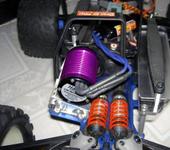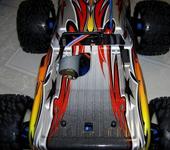 Удалось по-работать над давней модификацией REVO в электро. После снятия ДВС-а, глушака и бака с РЕВО, оказалось не так уж много места для переделки. Первым делом пошел на поиски 32P спура, так как на РЕВО стоит метрический, а хотелось бы использовать стандартные е-максовские пиньоны. Выход был найден с модификацией спура от NTC3 50-ти зубовый спур, он подходит практически один в один на место ревовского. (требуется незначительная расверловка 3-х отверстий, если делать качественно, то центровка сохраняется). Далее пришлось по-мудрить с креплением мотора (фотки будут в выходные, камера в отпуске), но удалось сохранить оригинальную схему и расширить выбор пиньонов и моторов. Удалось сохранить и дугу защиты. В результате пиньоны лринимаются от 11 до 24 зубовые, а вот со спурами вариантов практически нет разве, что плюс-минус 2 зуба.