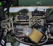 Общий порядок настройки таков: снимаем карбюратора воздушный фильтр (чтобы видеть заслонку), на аппе выставляется в ноль все что только можно (главное - обнулить триммер канала газ-тормоз). Аппаратура включается, чтобы серва держала “ноль”. Качалка сервы отвинчивается и переставляется в нейтральное, или максимально близкое к нему, положене; чаще всего это будет параллельно оси машины. После этого пальчиками (с применением инструментов по необходимости, т.к. тяги бывают чуть разные) длина тяг настраивается таким образом, чтобы: