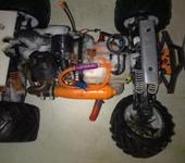Переделывать не много ,все абсолютно от саважа подходит это ,моторама, выхлопная труба “колено” маховик сцепы , само сцепление алюм.кулачки от саважа , бак не помню от чего ,помойму от траксы какойто на 100мил хотя можно было и родной оставить, горючки он меньше расходует чем родной двиг,