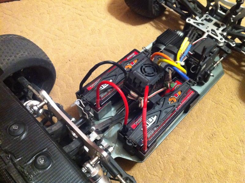 Провода отходящие от регуля родные и немного уделенные, средний провод свой 12AWG, не помню какой длины, на глаз померил. Но нужно исходить из того что бы он нормально дотягивался не к двум ближним коннекторам (как на картинке), а к двум дальним (к которым сейчас подключен регуль), так так есть разные аккумы и у них полярность по-разному расположена. Бананы 4mm.