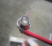Теперь фары стали более продвинутые. Линзы у светодиодов спилены для большего угла рассеивания, теперь светит во все стороны, так же увеличен ток, стали ярче. На передних фарах на каждый светодиод резистор 200 Ом, ток на каждом получился по 15mA. На задних фарах по два светодиода стоят последовательно, по резистору 150 Ом, ток тоже получился по 15mA. Итого фары потребляют 60mA. Фары горят постоянно при включении борта, что очень удобно, не забудешь выключить борт и можно контролировать питание. При аккумуляторах 2500mA/ч фары будут светить 40 часов. Машинку теперь видно всегда, даже в солнечный день, если машина очень далеко, всегда можно понять где перед , а где зад. 😃 Если хочется узнать побольше о светодиодах можете прочесть мою статью www.cefiro.ru/experience/showarticle.php?id=52&thi…Так же переделан бортовой выключатель. Поставлен советский военный почти герметичный, стоит вроде 74 рубля в “чипе и дипе”. Выведен в бок для удобства.