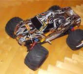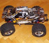 После того, как родной кузов был измочален в процессе нереального отрыва в хлам (штатные кузова Kyosho славятся своей хрупкостью), был приобретен новый, от TRAXXAS Revо, который был немного доработан с помощью молотка, напильника и такой-то матери (шутка))), так что теперь мы выглядим так
