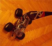После того, как родной кузов был измочален в процессе нереального отрыва в хлам (штатные кузова Kyosho славятся своей хрупкостью), был приобретен новый, от TRAXXAS Revо, который был немного доработан с помощью молотка, напильника и такой-то матери (шутка))), так что теперь мы выглядим так