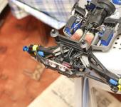 На разных сайтах советуют разные углы, и каждый для себя решает сам - какие выставлять. Я передние минимально свел (сделал схождение до 1 градуса), и развал выставил в районе 3 градусов (если смотреть на модель спереди, то нижние точки колес - шире, верхние - уже). Зад - все в ноль (хочу добиться некоторой избыточной поворачиваемости).