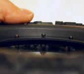 Не долго думая, и малость посоветовавшись по форуму, решил подклеить к внутреннему краю резины тонкий слой другой резины. Использовал велосипедную камеру. Немного фоток для наглядности.