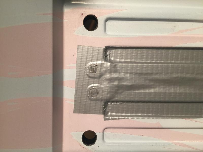 Для дополнительного крепления всей конструкции использовал скотч (типа армированный 😁 из Ашана), на сами контакты так же наклеил кусок с отверстиями проколотыми на необходимом расстоянии дыроколом. Теперь проверка. Если не работает, проверяем правильность расположения + и - контактов.