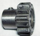 Юбку срезал с помощью Dremel с отрезным диском. Втулку выточил из нержавейки и запрессовал на шестерню.