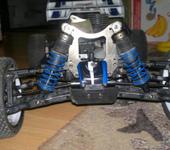 Недавно на покатушках случайно сошлись в лобовую с электричкой 1/10 на нехилой скорости. Итог: у электрички все ок, сломано крепление скорлупы, а у этой один нижний рычаг, его ось, линк тяги стабилизации, линк верхней тяги, передняя бабочка стала сложносочиненной формы, крепление осей, которое под передним бампером тоже все изогнулось… вроде ничего не забыл… Позднее второй передний рычаг вырвало после бордюра. Рычаги точно слабые, как и их оси, которые просто пополам ломаются. Впрочем, эта машинка таки не для бездорожья. А вообще машина ураган! Электрички рвет с места как стоячих! даже не ожидал. Да, еще гайки откручиваются колесные - успевай следить. Тоже на локтайт их, что ли, садить…
