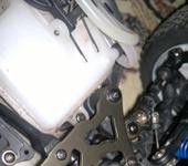 - Глушитель установлен как попало. Сопряжение с цилиндром перекошено. Крепление к шасси откручено и болтается.
