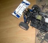 - Глушитель установлен как попало. Сопряжение с цилиндром перекошено. Крепление к шасси откручено и болтается.