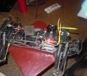 Итак … с чего бы начать то…ну пожалуй с того что как то раз мы с другом наткнулись в паркфлаере на cen mg 10 собраный, ставь пульт и едь… Ну вот значит, заказали приехало нам 2 машинки, которые мы ушатали довольно быстро, это видимо было рассчитано на детей каких-нибудь (огооо машинка с настоящим мотором!) Кое как продали их и наверное через час после продажи мне звонит один знакомый с которым мы скорешились на покатушках предлагает шасси саваджа сам не знает какого, но говорит так стоит по максимуму тюнинга, HeavyDuty привода и карданы, шестерня, тормоза, 8 алюминиевых амортизаторов, усиленные рычаги подвески итд… Я бегом к нему, приехал, посмотрел, забрал за 13 т.р. Привез домой отмыл разобрал все поменял изношенное, купил у него же 0.25 мотор HPI, и бегом катать, ну вот катались катались…и тут вдруг мне отдают ушатаный мотор офна .28(Ofna hyper mach.28(mac star) 6 портовый) Ну думаю мотор как мотор, пришел домой разобрал посмотрел, полез на нитрохаус заказывать ЗЧ на него и тут случайно вижу на него турбо голову и саму турбину ! боже мой, конечно заказываю, вместе с ними и коренной подшипник поршневую пару и еще чегото, не помню, итак теперь ждем месяц…, ну ладно, тем временем катаемся дальше и представляем как она поедет с турбомотором… И опять же в мои руки случайно попадает система бортового накала свечи, что сразу наталкивает меня на мысль(как раз к этому времени у друга в который раз ломается ротостарт а я меняю фиг знает какую по счету дергалку) на мысль о том что можно сделать завод машинки с пульта (как на зло мне отдают еще и бак с подсосом) прихожу домой и заказываю сразу 2 EZ Start`a от рево 3.3 Катаемся дальше, опять меня мучиет мой инженерный разум — вчера видел модуль заднего с микшером(микшер позволяет из 1 канала грубо говря сделать 2) а у меня пульт 3 канала пульт абалденный очень нравится менять не хочу! … Ну и вот заказываю модуль заднего хода с микшером … катаемся дальше =) ну и увидел я как на зло савадж 5.1 с 3х ступенчатой коробкой, машина ужасная, но вот коробка… в этот же вечер я соскребая денег заказываю 3х ступ коробку и кучу запчастей, тормоза там всякие шестерни гайки итд… Тут стало холодать, отвез я разобранную машинку в деревню и там оставил. Спустя время пришел тюнинг, ах да, офна к тому времени уже была обкатана и настроена, обкатывалась очень долго и аккуратно. В голове уже нарисовались схемы подключения всего, распределения питания(доставало то что на бортавуху не подавалось постоянно 6 вольт, теперь там всегда 6 не зависимо от того как посажны акумы) доработана система автозапуска, все влагозащищено, батарейки Panasonic Li-ion оригинальные. Я не буду описывать процесс сборки, много чего еще дорабатывалось во время сборки. Собиралась машинка с 12 ночи до 12 дня без перерыва, в новогодние праздники =) Электроники в моей машинке помоему больше чем в пятом вазе =) летом поставлю куллер на двигатель с датчиком температуры, чтобы можно было дрифтовать и не перегревать.