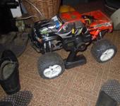 Итак … с чего бы начать то…ну пожалуй с того что как то раз мы с другом наткнулись в паркфлаере на cen mg 10 собраный, ставь пульт и едь… Ну вот значит, заказали приехало нам 2 машинки, которые мы ушатали довольно быстро, это видимо было рассчитано на детей каких-нибудь (огооо машинка с настоящим мотором!) Кое как продали их и наверное через час после продажи мне звонит один знакомый с которым мы скорешились на покатушках предлагает шасси саваджа сам не знает какого, но говорит так стоит по максимуму тюнинга, HeavyDuty привода и карданы, шестерня, тормоза, 8 алюминиевых амортизаторов, усиленные рычаги подвески итд… Я бегом к нему, приехал, посмотрел, забрал за 13 т.р. Привез домой отмыл разобрал все поменял изношенное, купил у него же 0.25 мотор HPI, и бегом катать, ну вот катались катались…и тут вдруг мне отдают ушатаный мотор офна .28(Ofna hyper mach.28(mac star) 6 портовый) Ну думаю мотор как мотор, пришел домой разобрал посмотрел, полез на нитрохаус заказывать ЗЧ на него и тут случайно вижу на него турбо голову и саму турбину ! боже мой, конечно заказываю, вместе с ними и коренной подшипник поршневую пару и еще чегото, не помню, итак теперь ждем месяц…, ну ладно, тем временем катаемся дальше и представляем как она поедет с турбомотором… И опять же в мои руки случайно попадает система бортового накала свечи, что сразу наталкивает меня на мысль(как раз к этому времени у друга в который раз ломается ротостарт а я меняю фиг знает какую по счету дергалку) на мысль о том что можно сделать завод машинки с пульта (как на зло мне отдают еще и бак с подсосом) прихожу домой и заказываю сразу 2 EZ Start`a от рево 3.3 Катаемся дальше, опять меня мучиет мой инженерный разум — вчера видел модуль заднего с микшером(микшер позволяет из 1 канала грубо говря сделать 2) а у меня пульт 3 канала пульт абалденный очень нравится менять не хочу! … Ну и вот заказываю модуль заднего хода с микшером … катаемся дальше =) ну и увидел я как на зло савадж 5.1 с 3х ступенчатой коробкой, машина ужасная, но вот коробка… в этот же вечер я соскребая денег заказываю 3х ступ коробку и кучу запчастей, тормоза там всякие шестерни гайки итд… Тут стало холодать, отвез я разобранную машинку в деревню и там оставил. Спустя время пришел тюнинг, ах да, офна к тому времени уже была обкатана и настроена, обкатывалась очень долго и аккуратно. В голове уже нарисовались схемы подключения всего, распределения питания(доставало то что на бортавуху не подавалось постоянно 6 вольт, теперь там всегда 6 не зависимо от того как посажны акумы) доработана система автозапуска, все влагозащищено, батарейки Panasonic Li-ion оригинальные. Я не буду описывать процесс сборки, много чего еще дорабатывалось во время сборки. Собиралась машинка с 12 ночи до 12 дня без перерыва, в новогодние праздники =) Электроники в моей машинке помоему больше чем в пятом вазе =) летом поставлю куллер на двигатель с датчиком температуры, чтобы можно было дрифтовать и не перегревать.